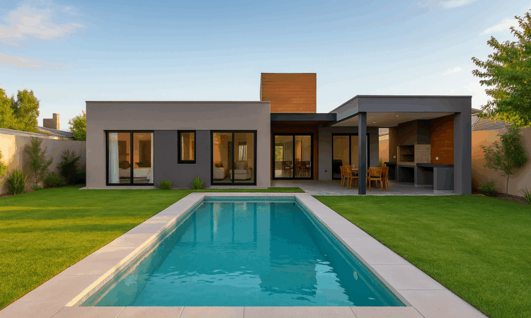 Casa contemporánea con pileta y jardín. Propiedad ubicada en Godoy Cruz, Mendoza, que combina diseño moderno, confort y espacios al aire libre en una de las zonas residenciales más demandadas.