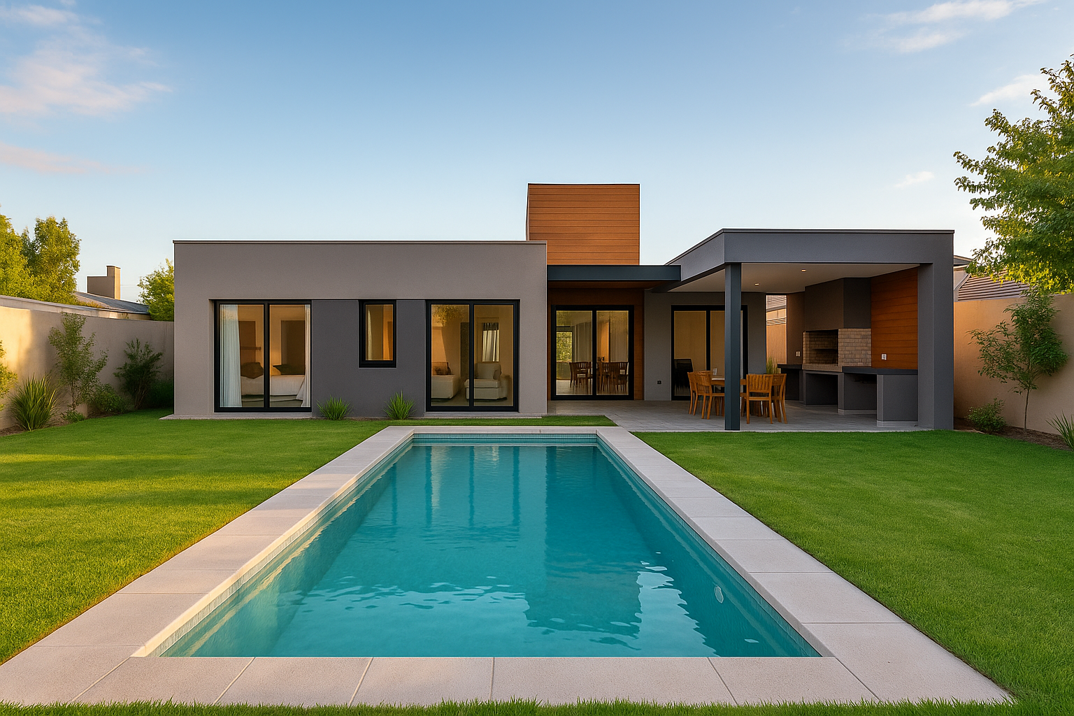 Casa contemporánea con pileta y jardín. Propiedad ubicada en Godoy Cruz, Mendoza, que combina diseño moderno, confort y espacios al aire libre en una de las zonas residenciales más demandadas.