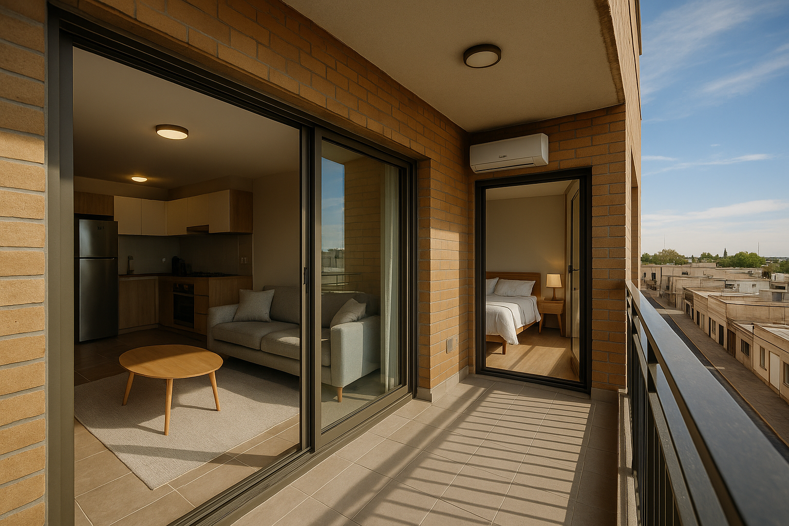 Cuenta con living comedor luminoso, cocina americana equipada, dormitorio con placard empotrado y baño completo con terminaciones modernas. El balcón al frente ofrece excelente iluminación natural y vista abierta a la ciudad. Incluye aire acondicionado, conexión para lavarropas y cochera disponible, garantizando practicidad y confort.